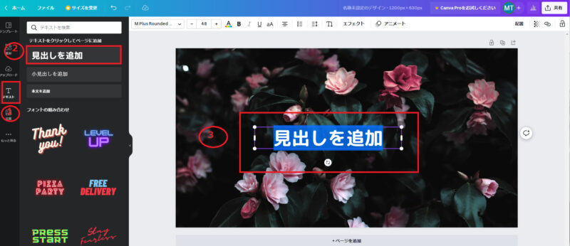 先ほどと同じで「テキスト」→「見出しの追加」を選択