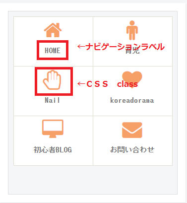 ボックスメニューにカーソルを置くとカラーの枠が現れます。もともとのアイコンと同じカラーなので赤い字の部分をカラーコードを入れると変更されます。