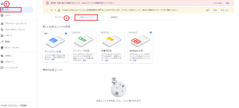 Googleアドセンスにログインすると、画面上部に表示されることがあります。