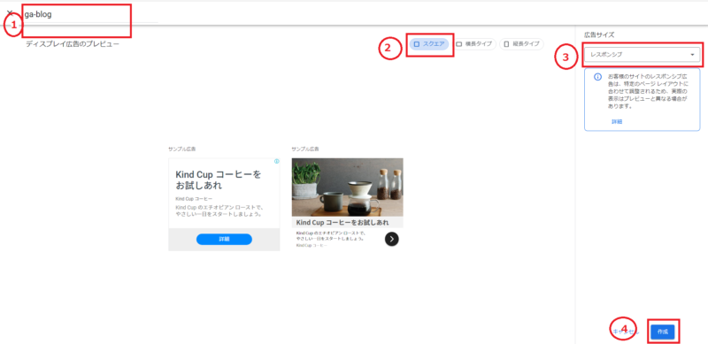 ①広告の名前を付けます。(自由につけて大丈夫です)