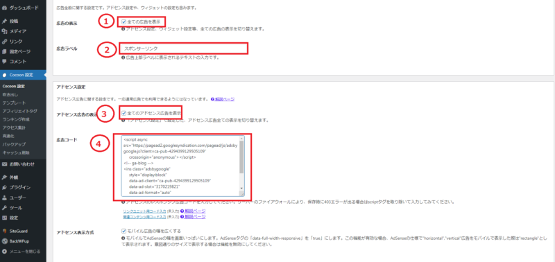 3.Google AdSense広告の設定、サイトに貼り付ける