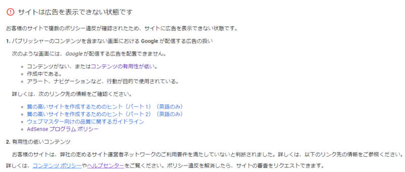 申請して5日後に不合格メール→2日で修正→AdSense申請